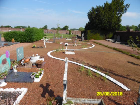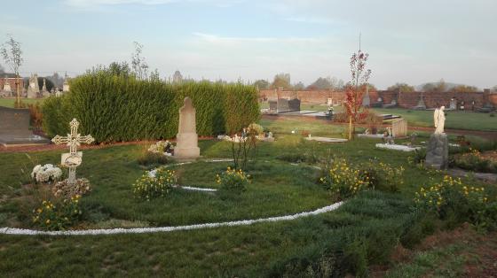 A l'arrière du cimetière, nous retrouvons une zone dédiée aux enfants. Les concessions d’enfant s’étendaient aléatoirement dans un espace qui comportait des concessions d’adultes. . La commune a été désireuse de restructurer l'espace afin d'y apporter un cadre plus approprié au recueillement. Ainsi, les concessions d’adultes en défaut d’entretien, ont été affichées puis reprises en gestion communale. La commune a fait ensuite appel à nos services pour repenser l'aménagement global de la parcelle des anges.
